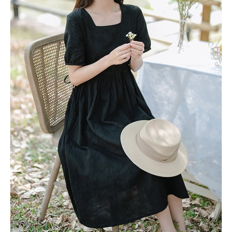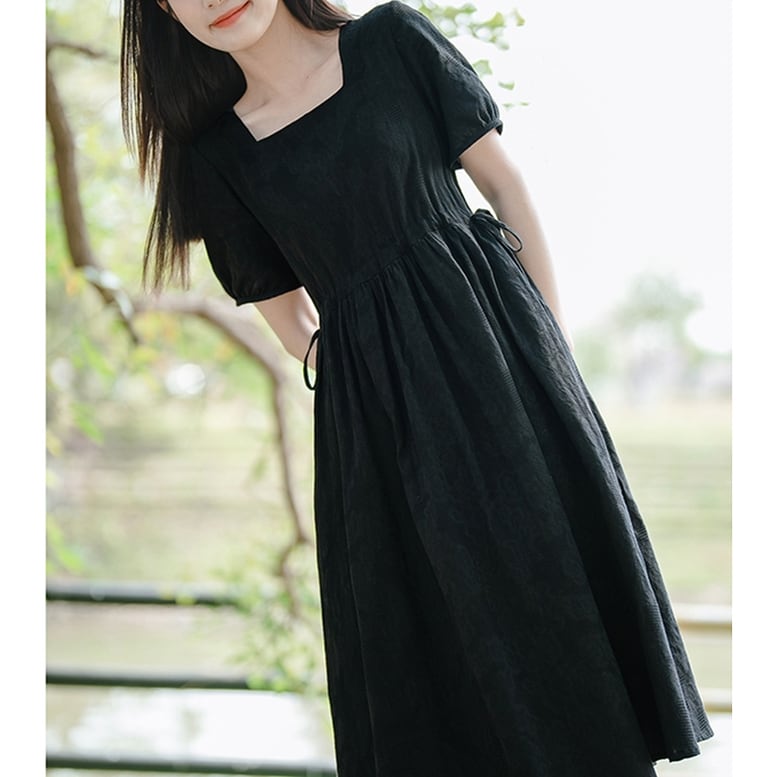 レディース フレアシフォンワンピース ワンピース 半袖 ボリュームスリーブ スクエアネック ウエストゴム シフォンシャツドレス ロングワンピース ひざ下丈 無地 ロング丈 黒 ブラック オシャレ シアー シンプル きちんと感 可愛い キレイめ 上品 フェミニン トラッド シック 知的 カジュアル 春 夏 秋 冬 デイリー おでかけ オンオフ兼用 普段着 スマート 細見え スタイルアップ 高見え 新鮮 上級者 主役級 鮮度アップ 軽やか ゆったり 体型カバー インスタ映え トレンド モノトーン エレガント