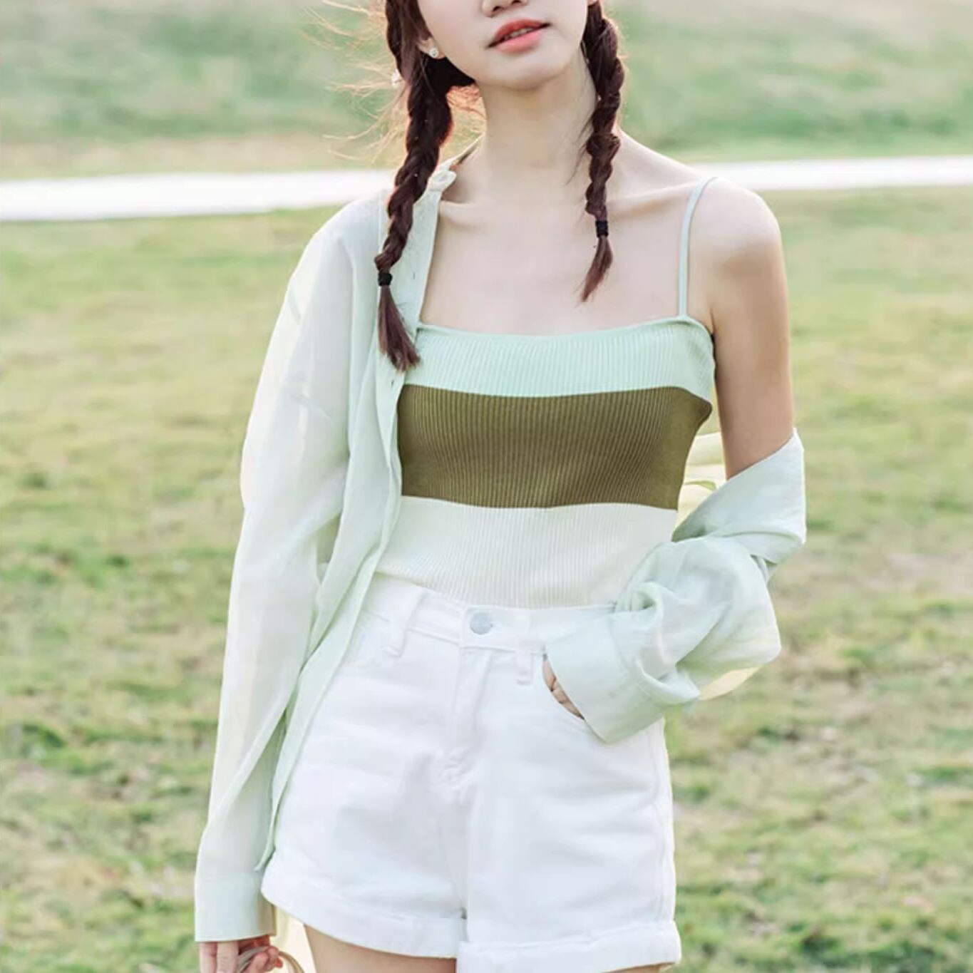 3color レディース トップス キャミソール ニットキャミソール ニット グラデーション インナー ボーダー柄 無地 袖なし ノースリーブ 肌魅せ セクシー ラフ シンプル スリム 大人カジュアル カジュアル フェミニン ブルー ブラウン グリーン お洒落 春夏 春 夏 秋 ママ ママコーデ 20代 30代 40代 デート お出かけ 普段使い 韓国 トレンド 可愛い 大人 大人女子 大人可愛い 通学 学生 女子会 着回し デイリー こなれ感 レイヤード 部屋着 海 リゾート 定番 涼しい インスタ映え