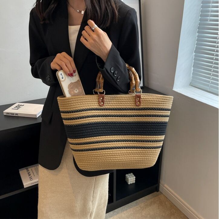 4color レディース バッグ レディースバッグ ハンドバッグ バンブーハンドル ストローバッグ かごバッグ マチ広 大容量 収納力 バイカラー 大きめ 自立 大人ガーリー ガーリー 大人カジュアル カジュアル ナチュラル ブラック オフホワイト 茶黒ボーダー 白黒ボーダー お洒落 春夏 春 夏 秋冬 秋 ママ ママコーデ 20代 30代 40代 デート お出かけ 普段使い 韓国 トレンド 可愛い 大人 大人女子 大人可愛い 通勤 通学 学生 旅行 海外旅行 インスタ映え 海 バカンス 高見え