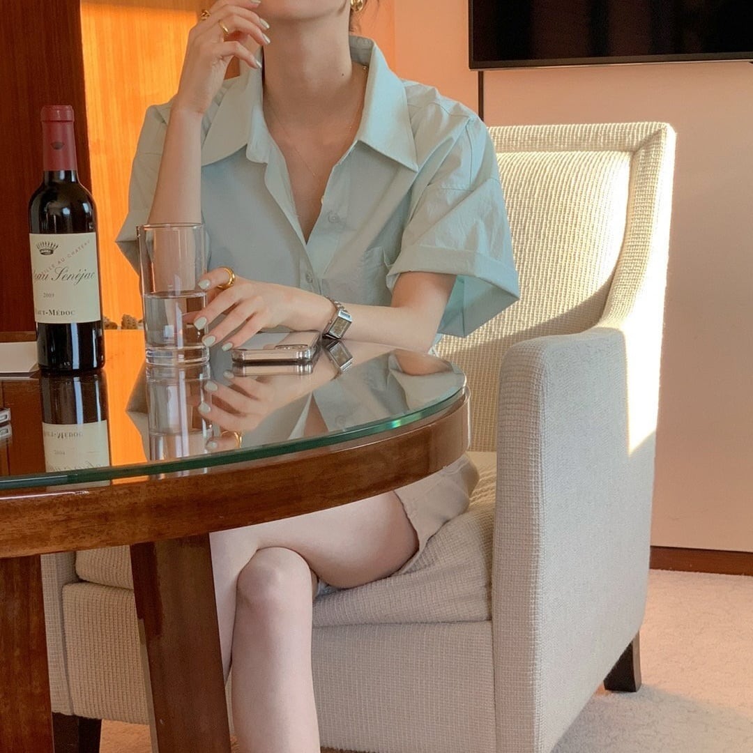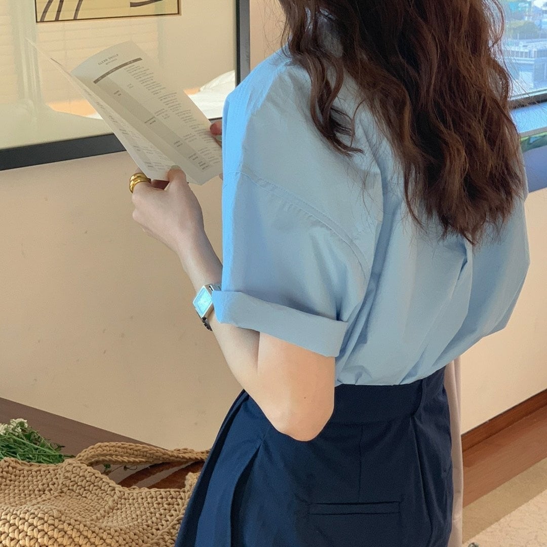 6color レディース トップス シャツブラウス シャツ ブラウス カラーシャツ ソリッドカラー オーバーシルエット ゆったり 襟付き ポロ襟 無地 袖あり 半袖 袖口ロールアップ 清潔感 大人カジュアル カジュアル ライトブルー ホワイト ミントグリーン イエロー ピンク ネイビー お洒落 春夏 春 夏 秋 ママ 20代 30代 40代 デート お出かけ 普段使い 韓国 トレンド 可愛い 大人 大人女子 大人可愛い 通勤 通学 女子会 着回し デイリー こなれ感 レイヤード 涼しい きちんと感
