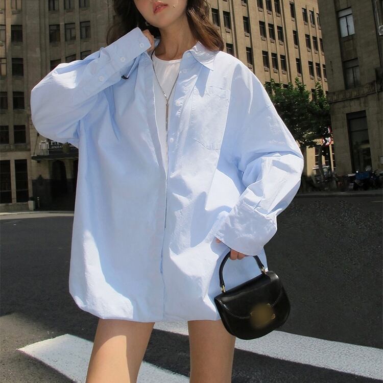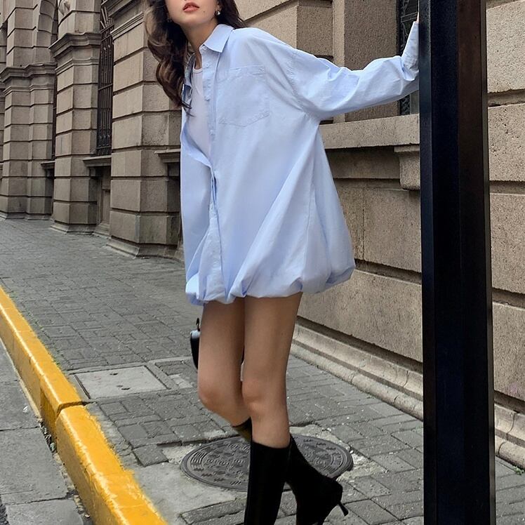 2color レディース トップス シャツ バルーンシャツ バルーン チュニック丈 バックタックデザイン 隠しボタン 無地 袖あり 長袖 ボリューム袖 清潔感 エレガント 大人カジュアル カジュアル スタイリッシュ セクシー ホワイト ライトブルー お洒落 春夏 春 夏 秋 ママ ママコーデ 20代 30代 40代 デート お出かけ 普段使い 韓国 トレンド 可愛い 大人 大人女子 大人可愛い 通学 学生 女子会 着回し デイリー こなれ感 レイヤード 個性的 インスタ映え 抜け感