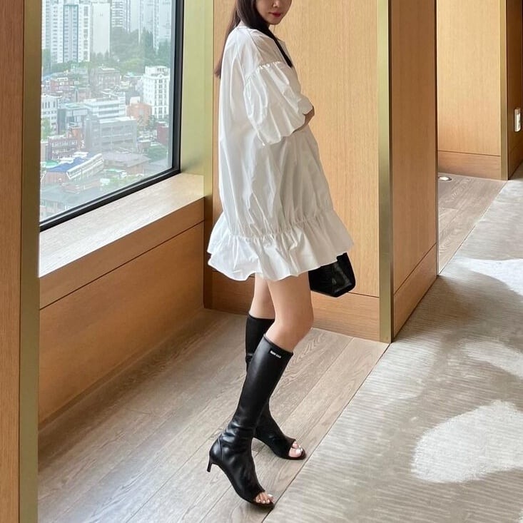 裾フリルがガーリー感満載なミニ丈ワンピース。