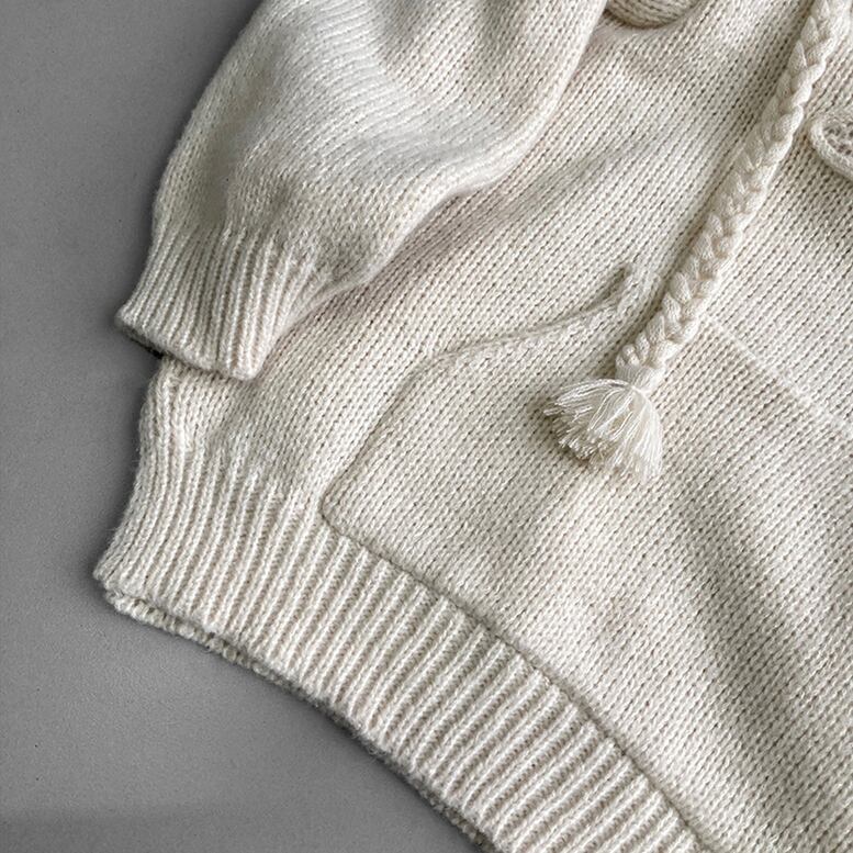 フードは三つ編みのストリングでヴィンテージライクな要素をプラス