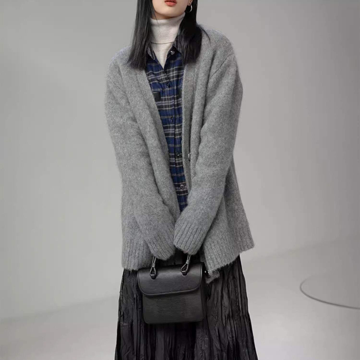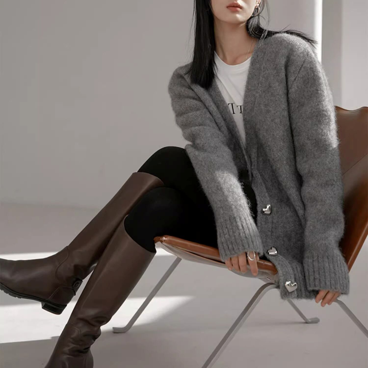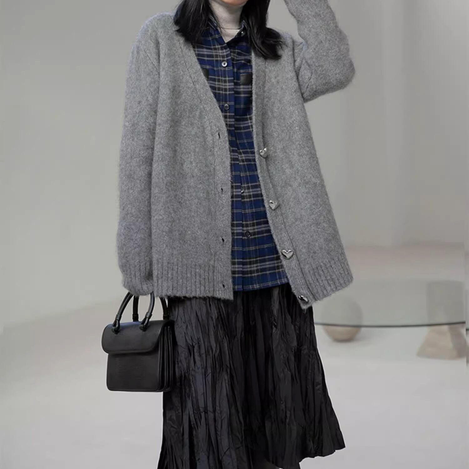 レディース トップス カーディガン ニットカーディガン ミドル丈 ハートボタン リブ 前開き 羽織り シンプル 無地 袖あり 長袖 ドロップショルダー ルーズ ゆったり Vネック ガーリー 大人カジュアル カジュアル フェミニン グレー お洒落 春 秋 秋冬 ママ ママコーデ 20代 30代 40代 デート お出かけ 普段使い 韓国 トレンド 可愛い 大人 大人女子 大人可愛い 通勤 通学 学生 女子会 着回し デイリー こなれ感 レイヤード 定番 上品 きれいめ インスタ映え 体型カバー 暖かい
