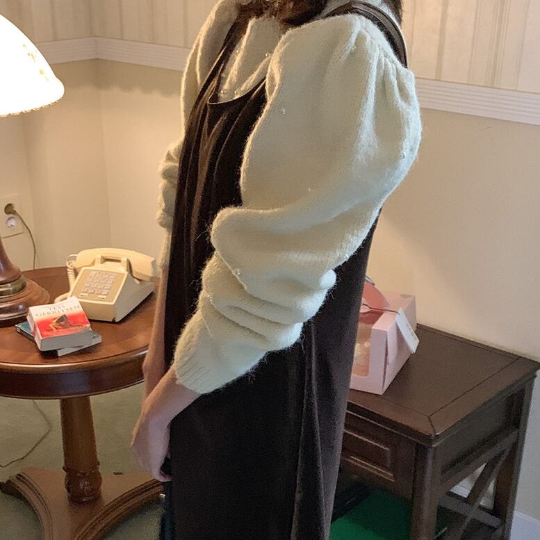 2color レディース パール付きニット トップス ニット パール 長袖 ラウンドネック ケーブルニット ビジュー付き パフスリーブ 無地 グレー ホワイト オシャレ シンプル 可愛い キレイめ 上品 フェミニン カジュアル 大人可愛い エレガント ガーリー キュート デイリー おでかけ オンオフ兼用 コンパクト スマート 細見え スタイルアップ 高見え 新鮮 主役級 鮮度アップ 上級者 ゆったり 体型カバー インスタ映え トレンド オフィス 通勤 通学 デート