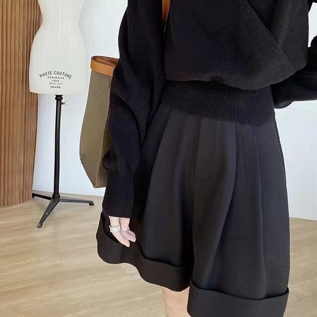 ゆったり履けてタック入りできちんと感のあるワイドレッグショートパンツ。