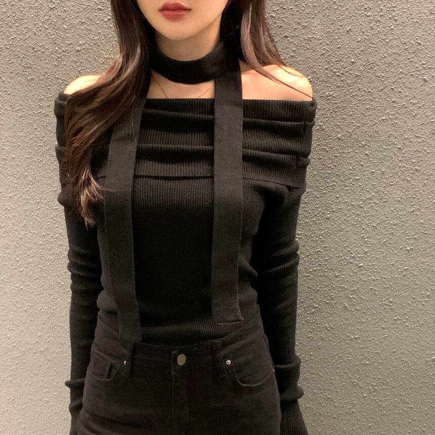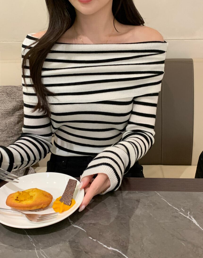 3color レディース トップス ニット オフショルダーニットトップス オフショル リブニット チョーカー ミドル丈 ボーダー柄 無地 袖あり 長袖 伸縮性 エレガント スリム 華奢見え セクシー 大人カジュアル カジュアル フェミニン ホワイト ブラック お洒落 春 秋 冬 秋冬 ママ ママコーデ 20代 30代 40代 デート お出かけ 普段使い 韓国 トレンド 可愛い 大人 大人女子 大人可愛い 通学 学生 女子会 着回し デイリー こなれ感 レイヤード 定番 インスタ映え モテコーデ 肌みせ