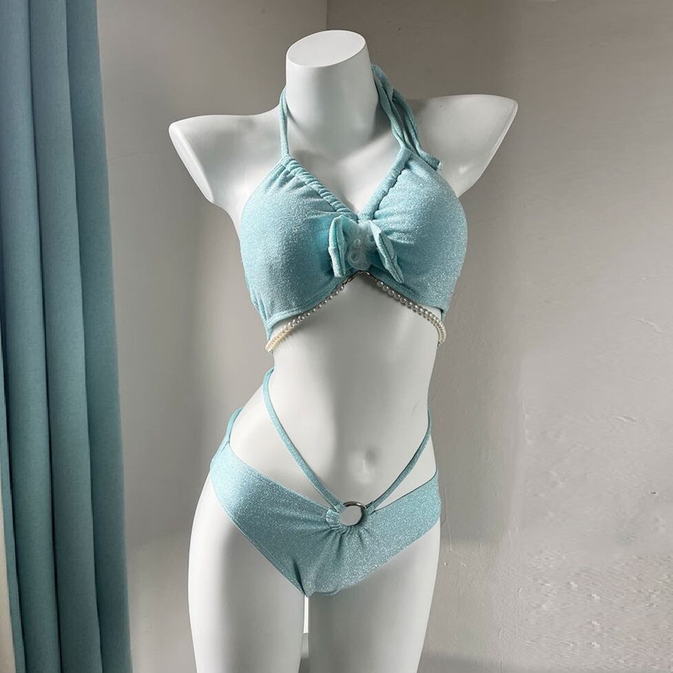 キラキラした素材感が映えるビキニ水着