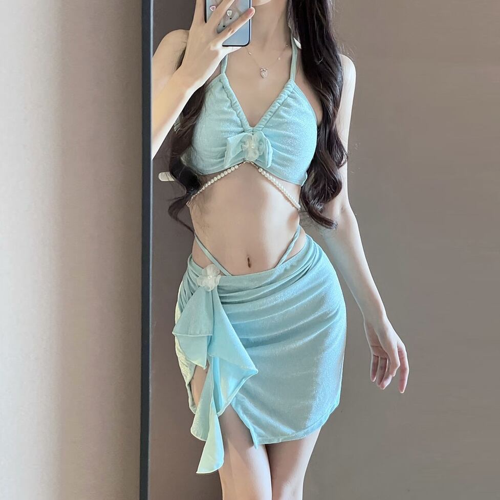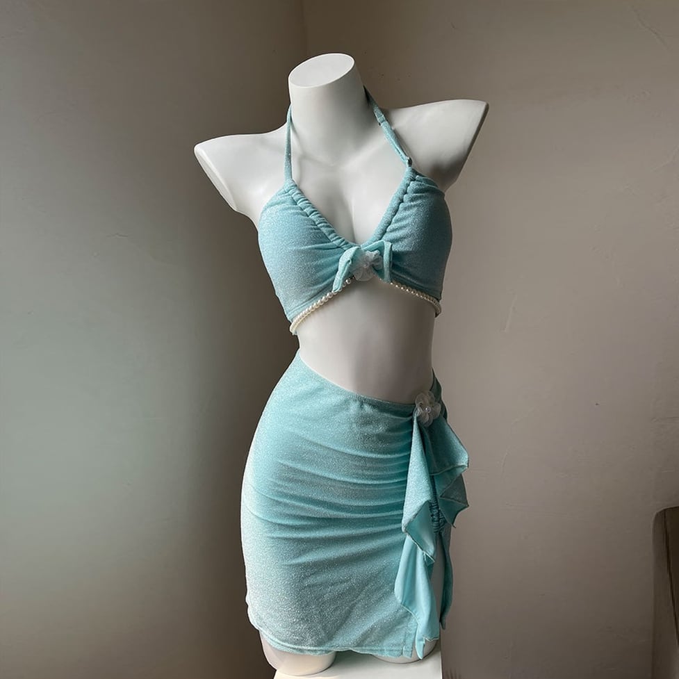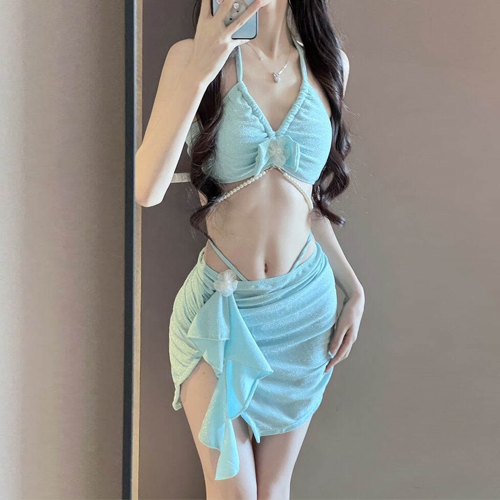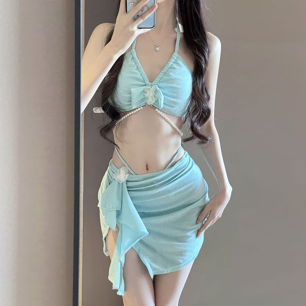レディース フロントフラワーリボンパール付きビキニ スカート付きビキニ水着 パール付きビキニ水着 レースフラワー付きビキニ水着 水着 ビキニ スイムウェア スカート リボン 胸元 谷間見せ 盛れる 日焼け防止 UVカット 紫外線対策 大人可愛い きれいめ 上品 セクシー おしゃれ レトロ キュート ガーリー エレガント 春 夏 海 ビーチ プール リゾート 旅行 体型カバー 二の腕カバー 美脚 脚長 着痩せ スタイルアップ 美スタイル 高見え 格上げ モテ トレンド インスタ映え ブルー ライトブルー