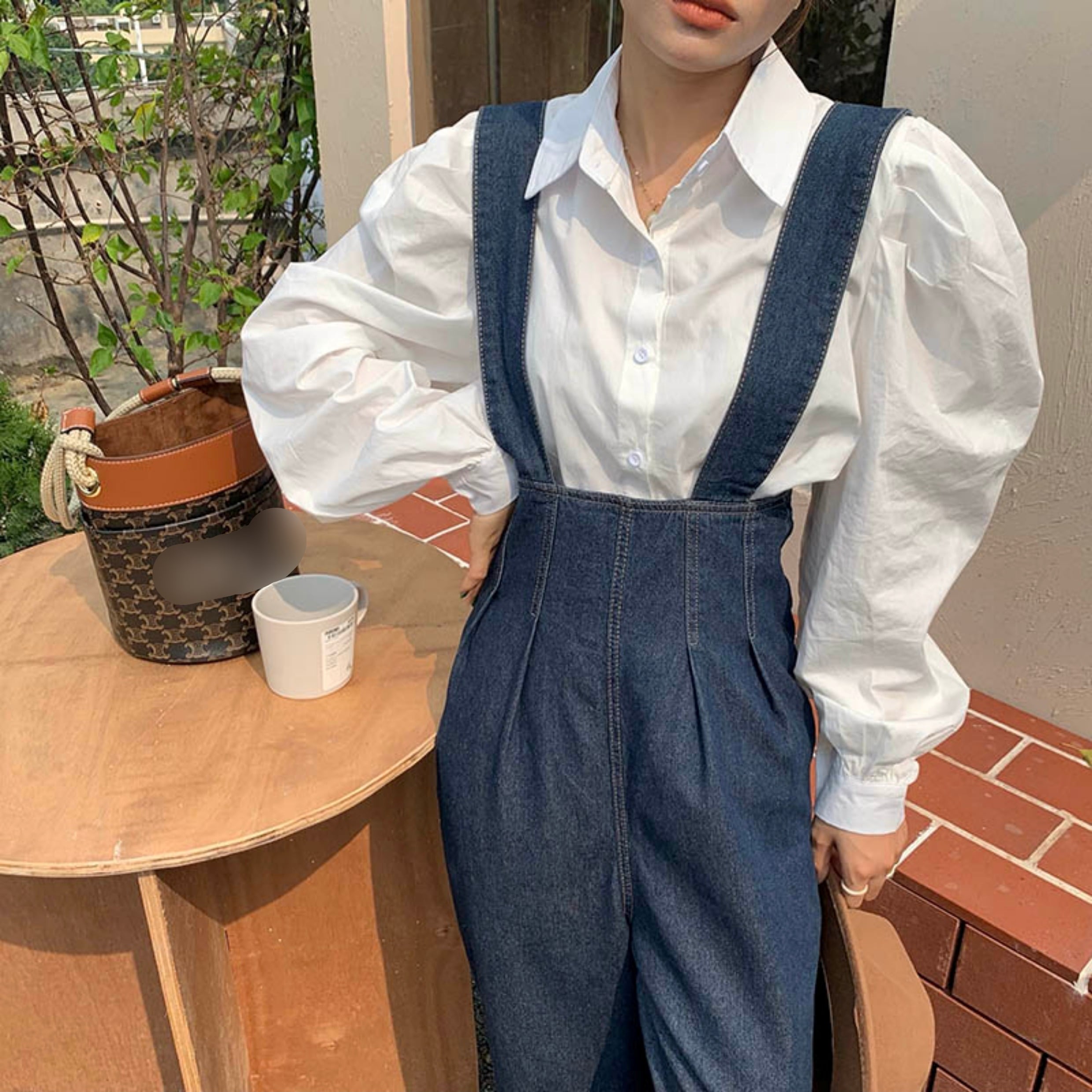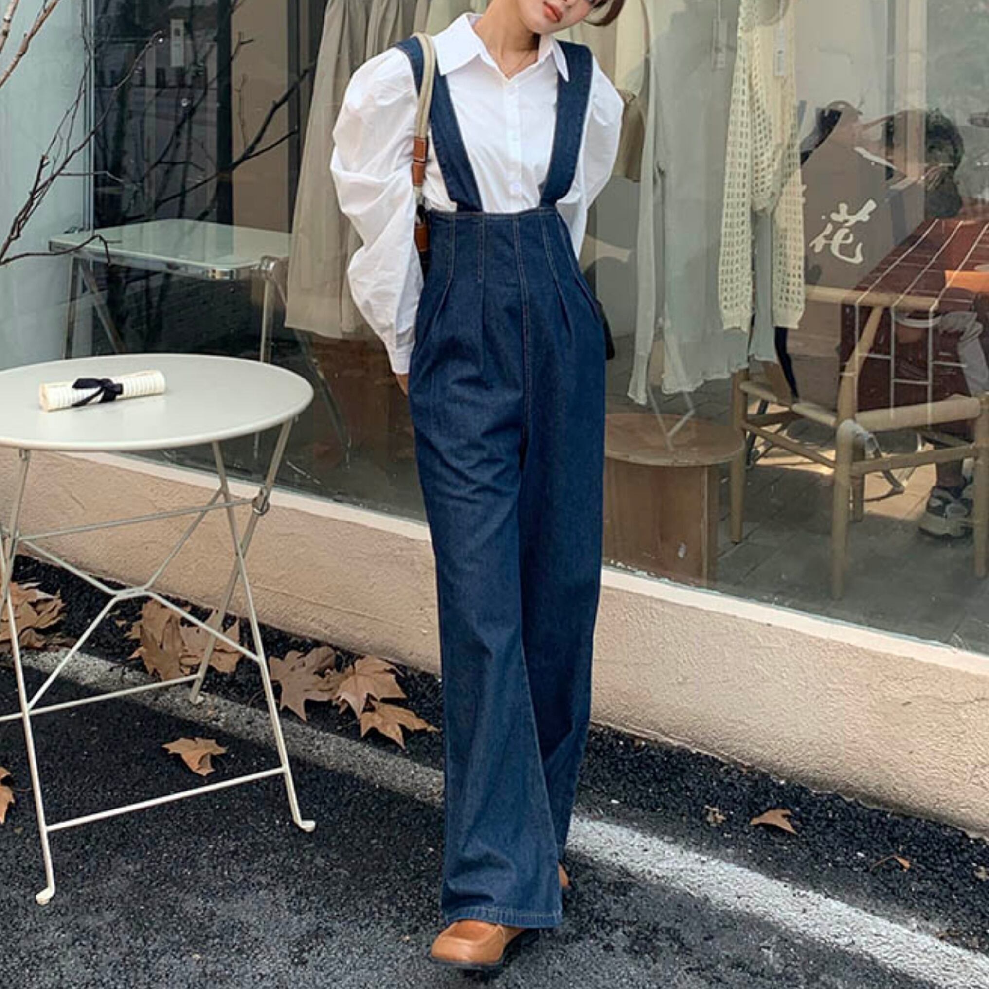 デニムブルーの色合いがお洒落なオールインワンサロペット。