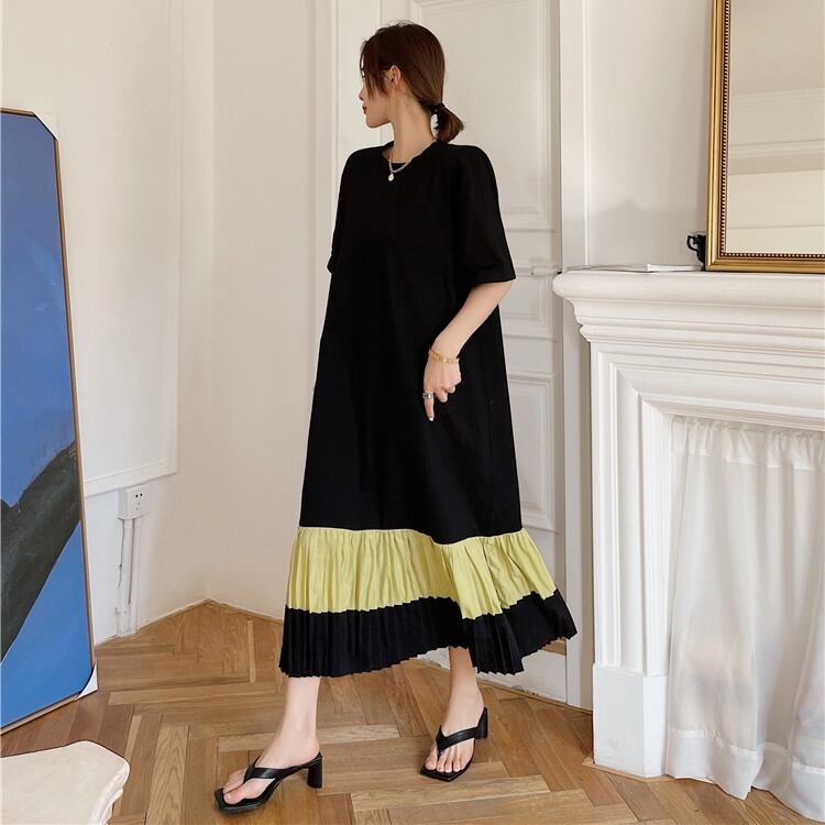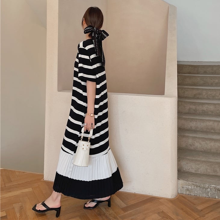 2color レディース ワンピース ロングワンピース マキシ丈ワンピース マキシ丈 バイカラー ストライプ柄 裾プリーツ 切り替え 膝下 袖あり 半袖 ラウンドネック Aライン フレア ハイウエスト エレガント フェミニン ガーリー 大人カジュアル 上品 きれいめ ブラック お洒落 春夏 春 夏 秋 ママ ママコーデ 20代 30代 40代 デート お出かけ 普段使い 韓国 トレンド 可愛い 大人 大人女子 大人可愛い 旅行 通学 休日 女子会 こなれ感 体系カバー ゆったり インスタ映え 定番